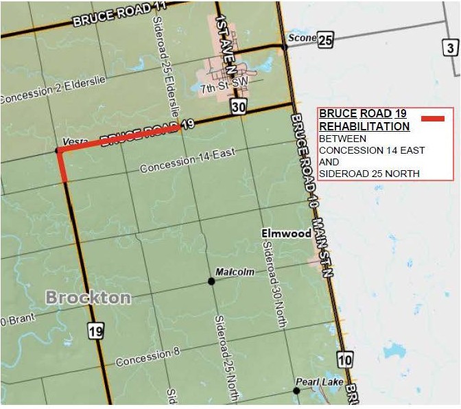 Road reconstruction on Bruce Road 19 near Chesley, between Concession Road 14 East and Sideroad 25 North, is now completed and reopened to traffic.