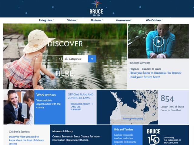 We attempted to realize these goals across the site in a number of ways, but fresh off our launch we’d like to highlight some key things you can discover as you start to explore the new brucecounty.on.ca