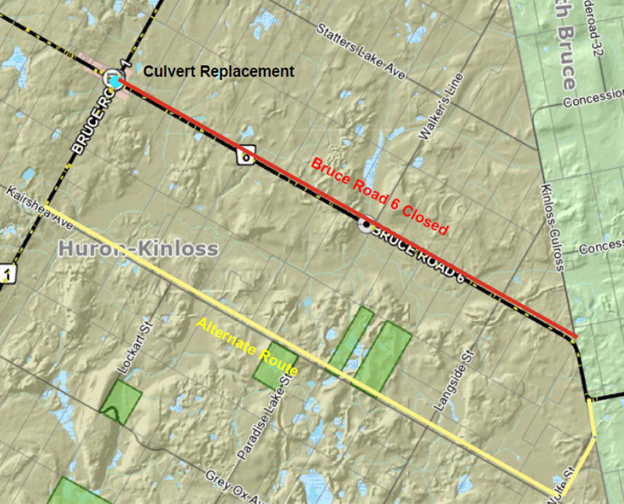 Bruce Road 6, between Bruce Road 1 at Holyrood and east to Wolfe Street, will be closed for culvert replacement on Thursday, August 21, 2025, from approximately 6:30 a.m. until 5 p.m., weather permitting.
